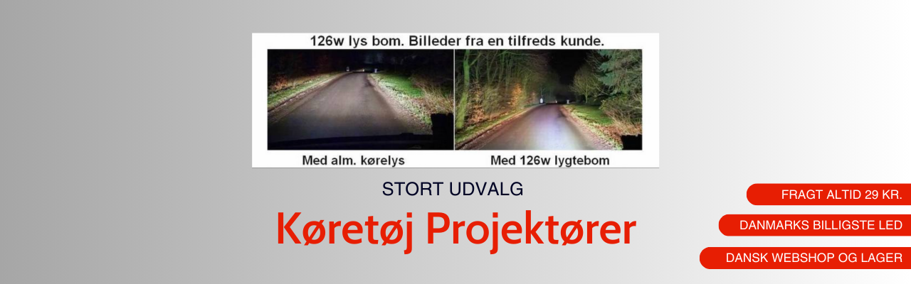 Hos Dinled har vi specialiseret os i at finde de bedste og billigste LED produkter til hjemmet, køretøjer, skibe, planter, landbrug, industri, indendørs og udendørs arealer, ride og sportshaller m.m. Søger du produkter, som ikke findes i vores webshop, er du velkommen til at kontakte os, så giver vi gerne et attraktivt tilbud. Med LED lys, opnår du op til 80% besparelse på elregningen og med vores lave priser, er en investering i ny belysning hurtigt tjent hjem. Vi leverer til Danmarks laveste priser, men du er også velkommen til, efter aftale at afhente dine køb. Herunder ser du et lille udvalg af vores produkter og mange tilbud.