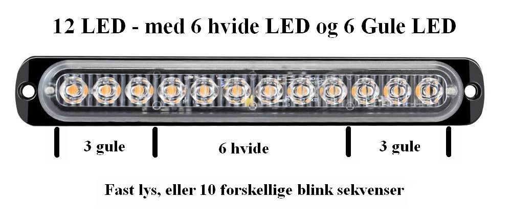 12 LED Blitzblink / strobe blink 12v / 24v, Ensfarvede og tofarvede. Med meget kraftigt lys