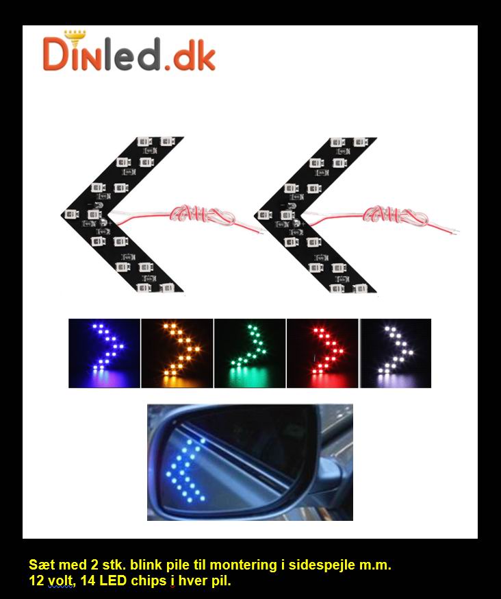 Blå / røde / gule blinklys pile bl.a. til montering bag glasset i sidespejlet.