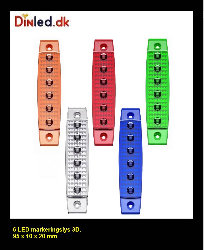 6 LED markeringslygte, 12 / 24v - 3D linser