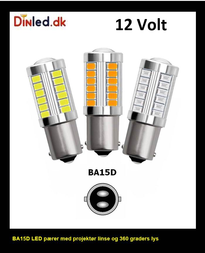 BAY15D LED pære med projektor linse - 12v