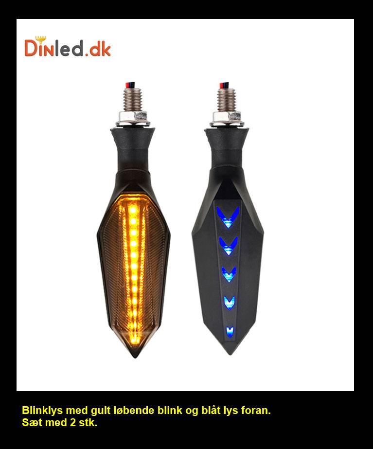 2 stk. LED blinklygter med gult dynamisk (løbende) lys og blåt lys fremad.