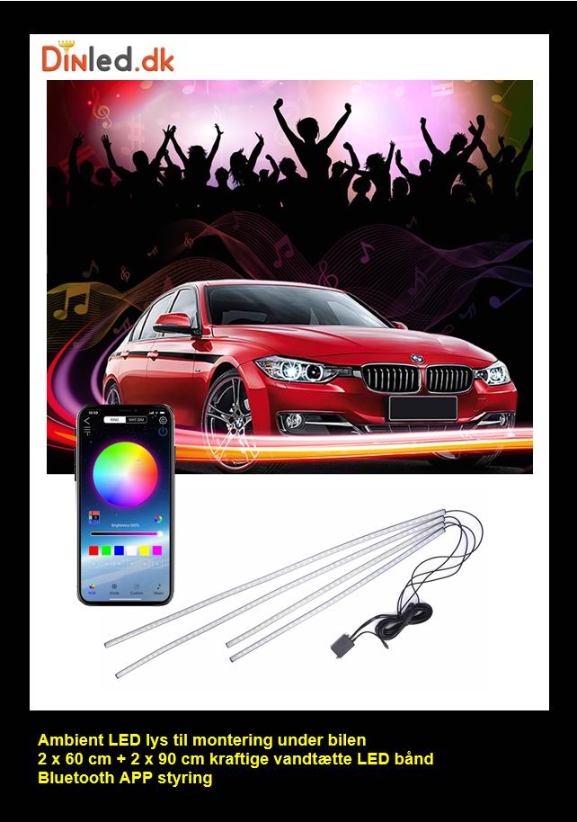 Ambient multicolor LED lys til montering under bilen - med APP styring - 90x120cm