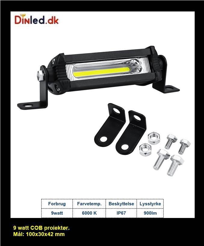 LED COB køretøjs projektør 9 watt 12/24 volt - ny model.