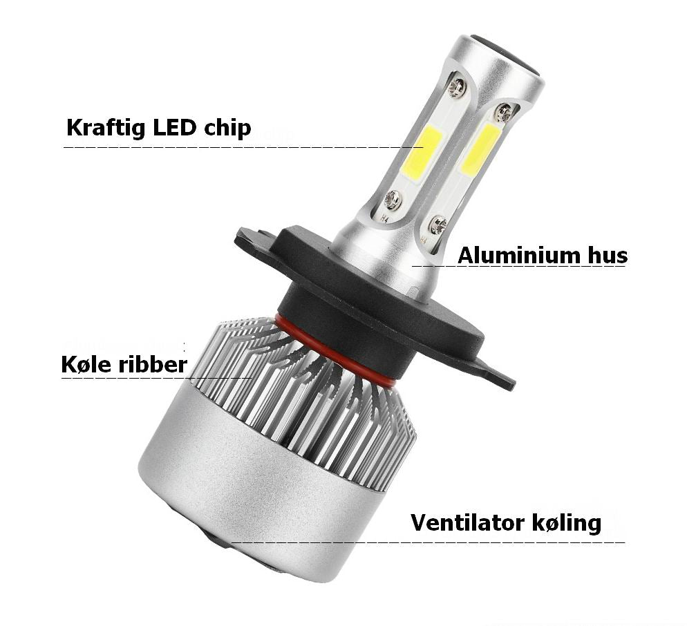 H1, H3, H7, H11, 9005, 9006, har 2 sidet LED og kort lys
