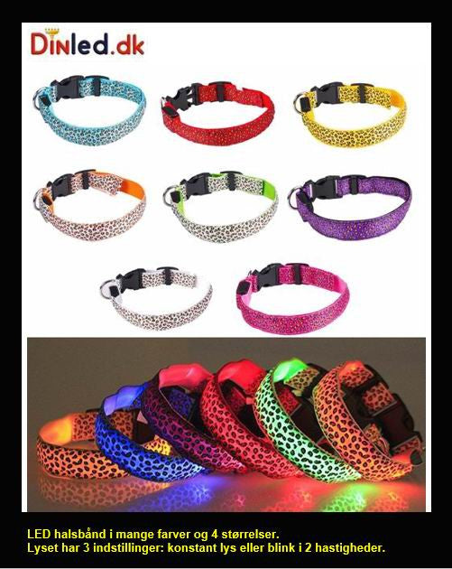 LED halsbånd i 7 farver og 3 justerbare størrelser.