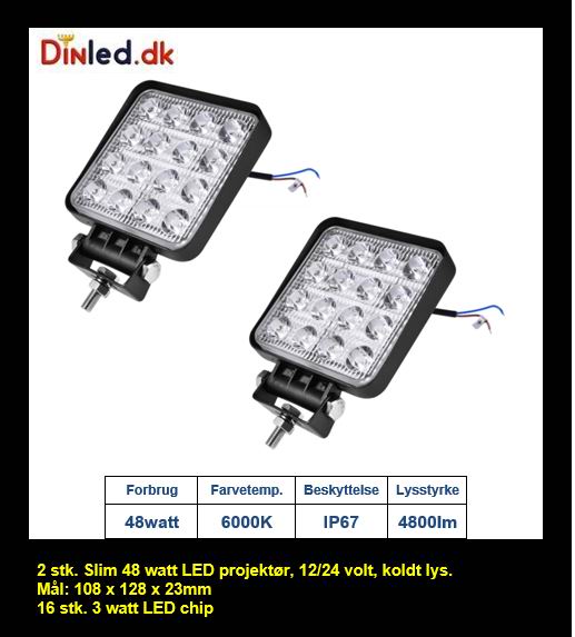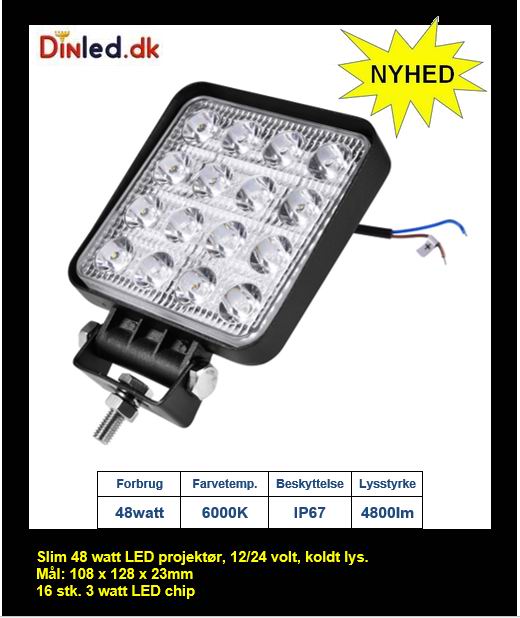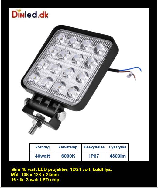LED køretøjs projektør 48 watt 12/24 volt - SUPER SLIM
