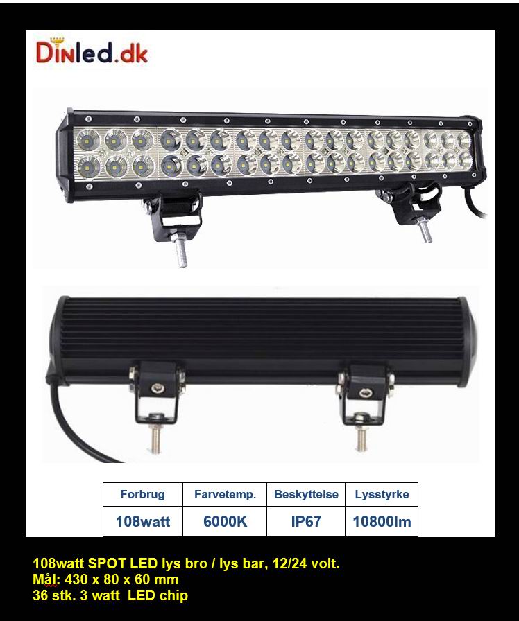 LED Lys bro / lys bar 108 watt 12/24 volt SPOT