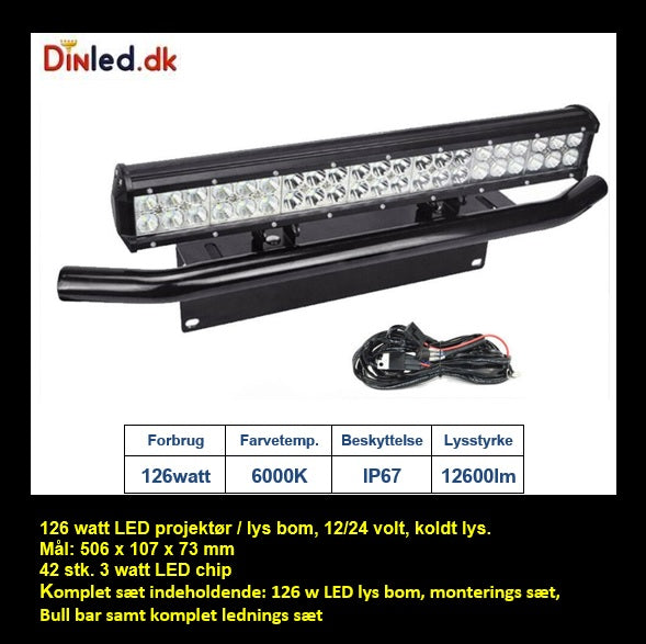 LED Lys bro / lys bar 126 watt inkl. Bull bar og Ledning