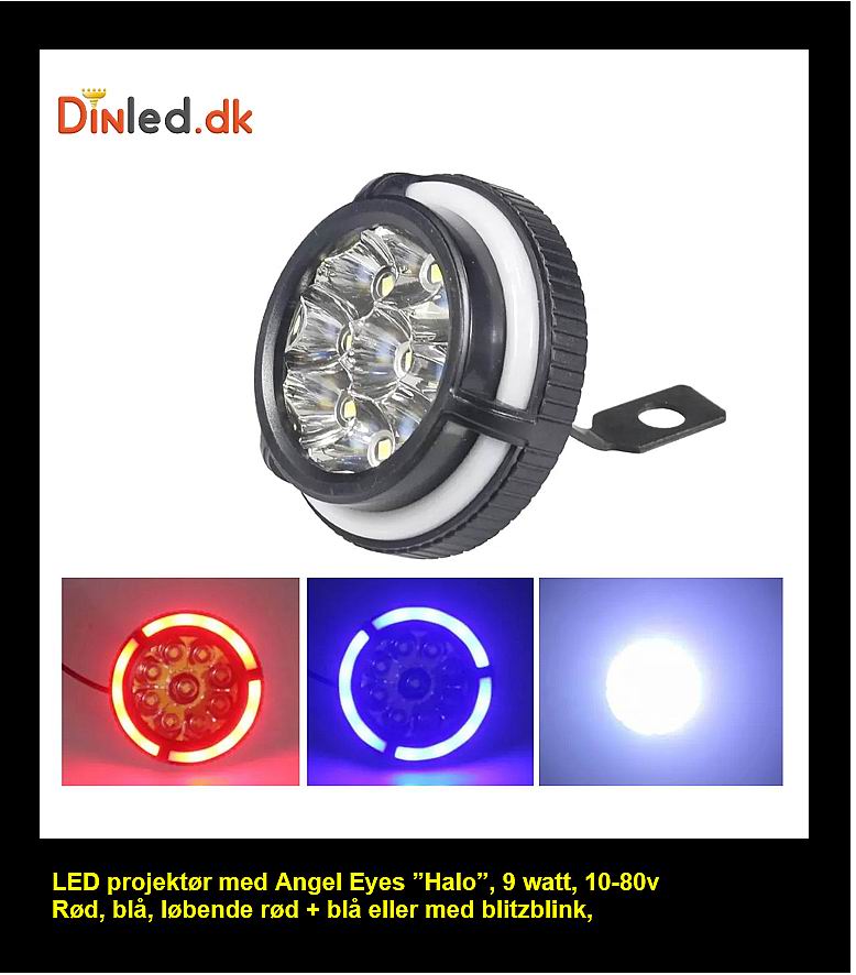 LED projektør med Halo + Blitzblink 9 watt, 12 volt