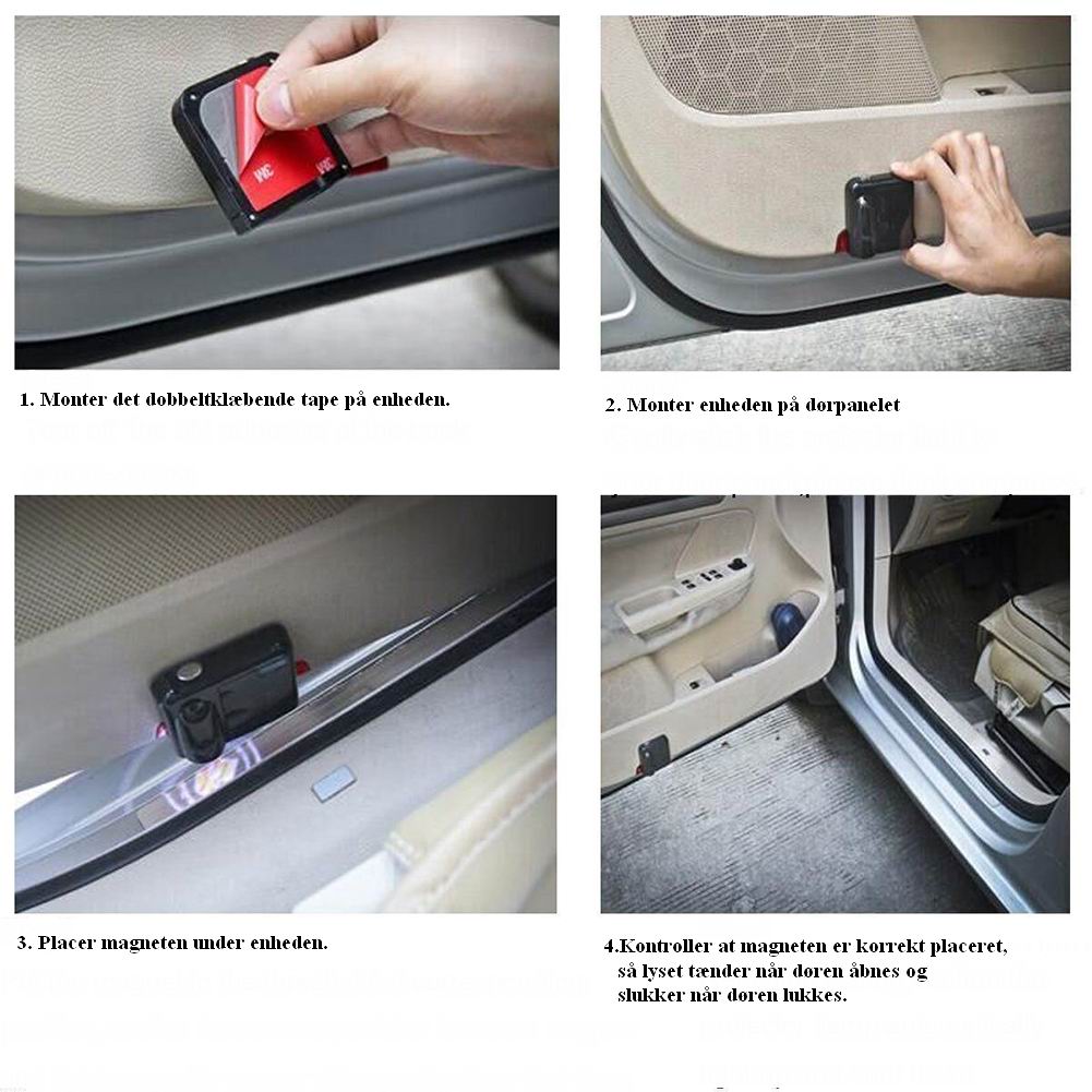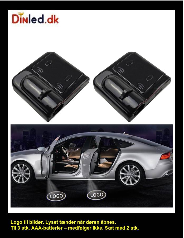 Logo til bildør. Tænder når døren åbnes og lyser bilens logo ned på jorden.