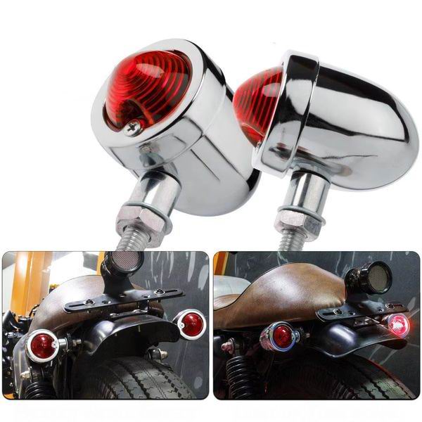 Store røde Retro baglygter til Scooter / Motorcykel - Chrome eller sort