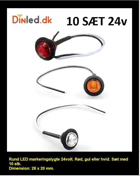 Rund LED markeringslygte, 24v sæt med 10 stk