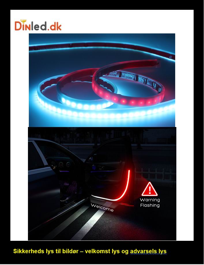 LED lyset er med 2 farver, hvid til velkomstlyset og rødt advarselslys som med forskellige effekter advarer om den åbne dør.