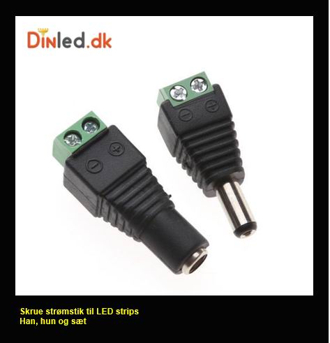 Strømstik med skrueterminaler, passer til alle ensfarvede 12v og 24v strips,