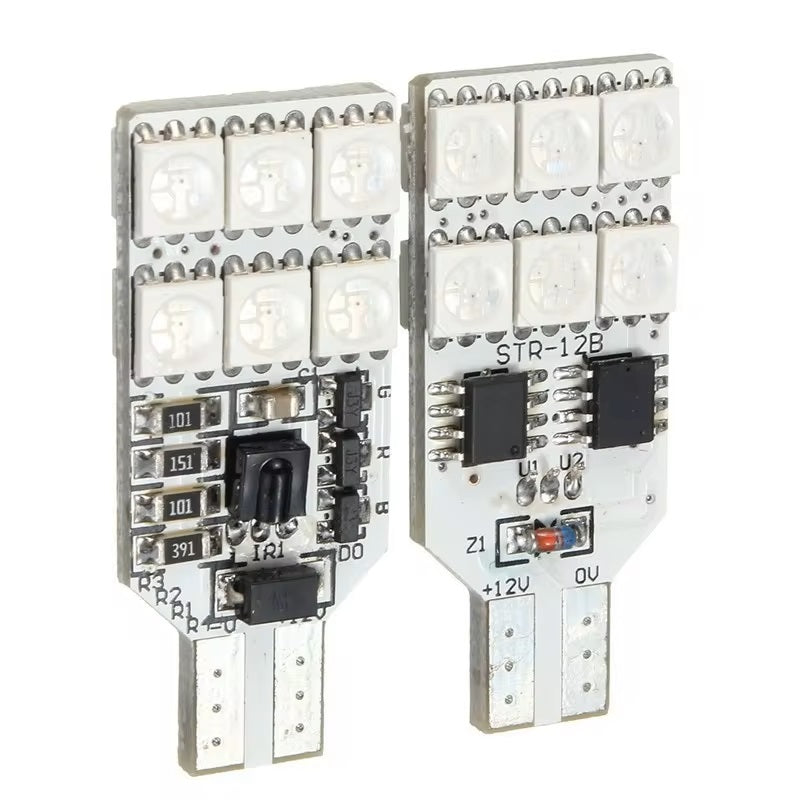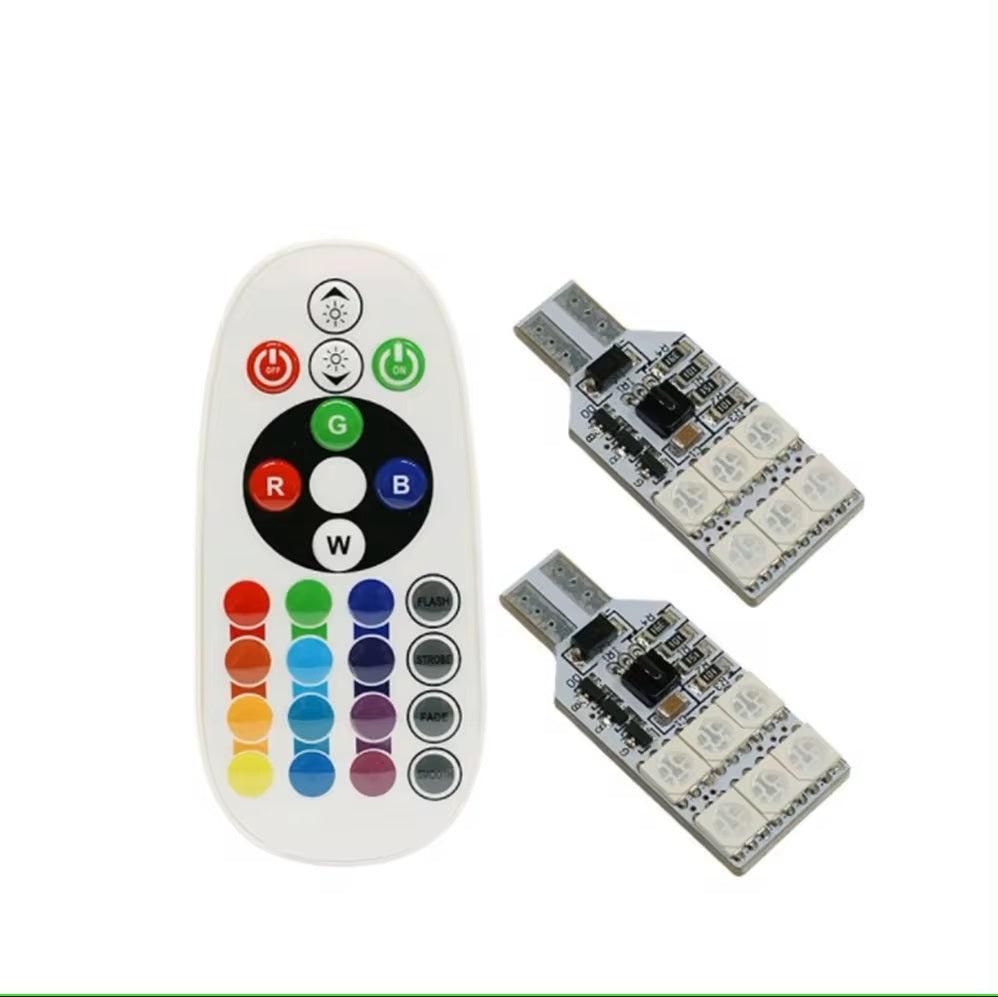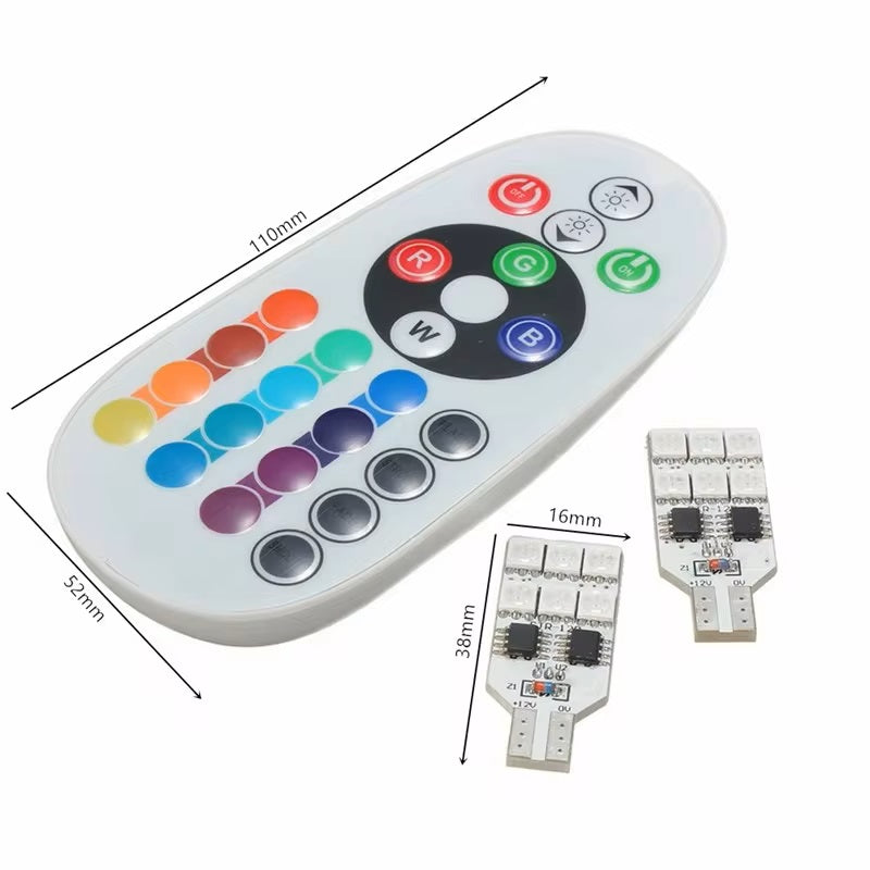 T10 W5W RGB Kabinepærer med fjernbetjening - 12 volt