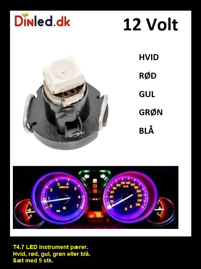 T4.7 LED Instrument pærer - sæt med 4 stk., 12v