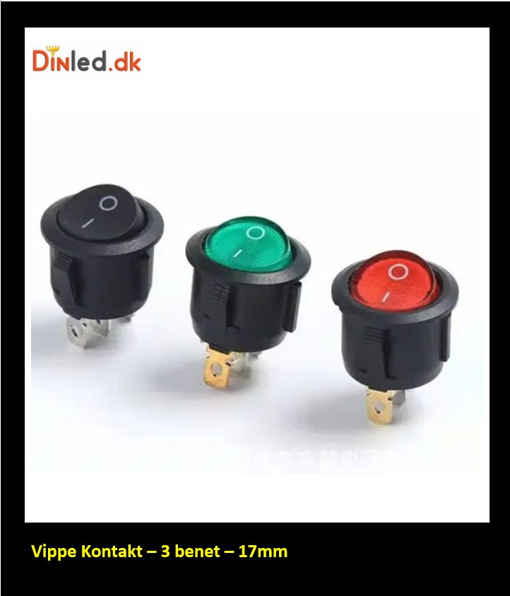 Kontakten har 3 ben og fås som rød, blå eller hvid